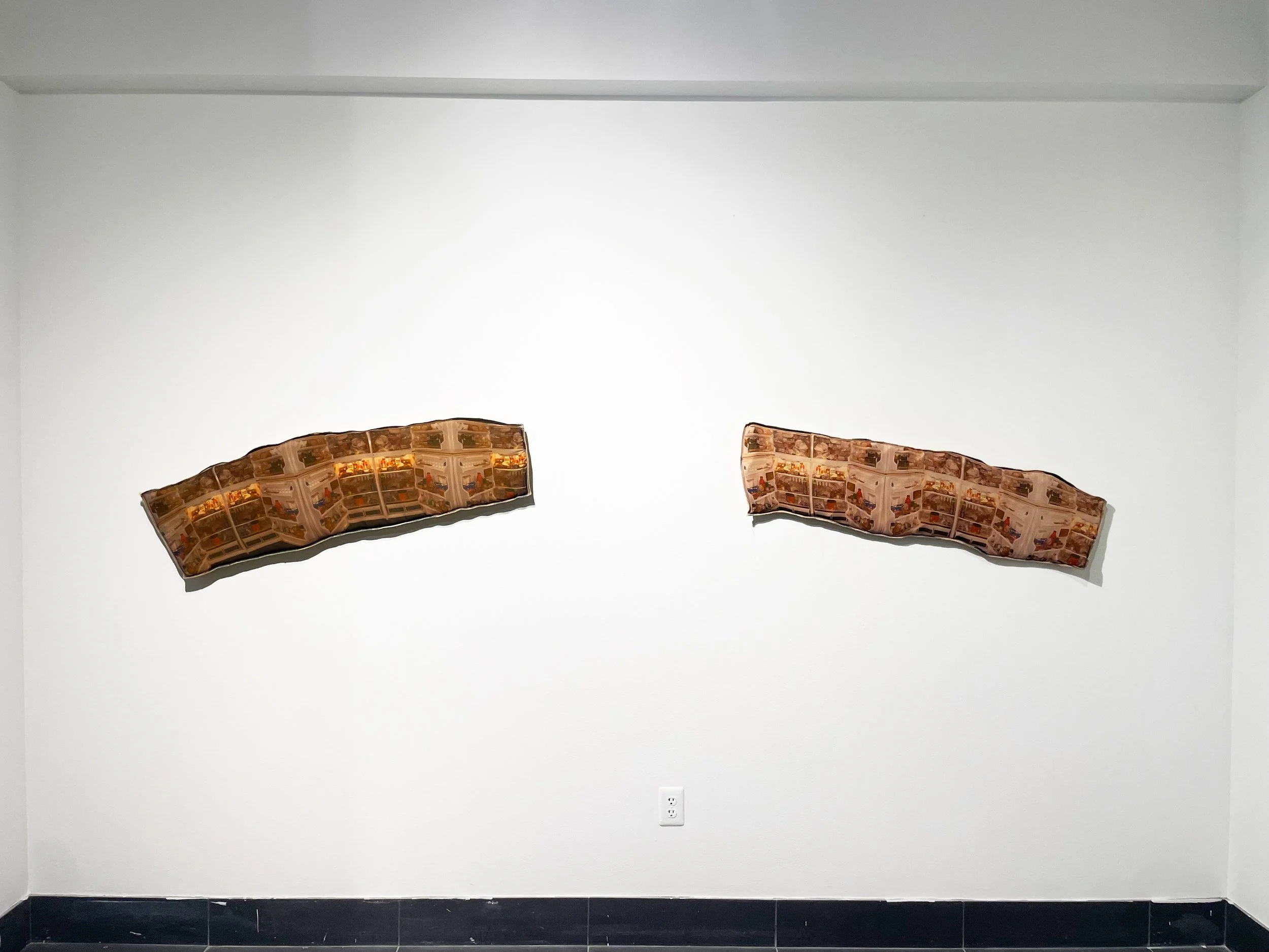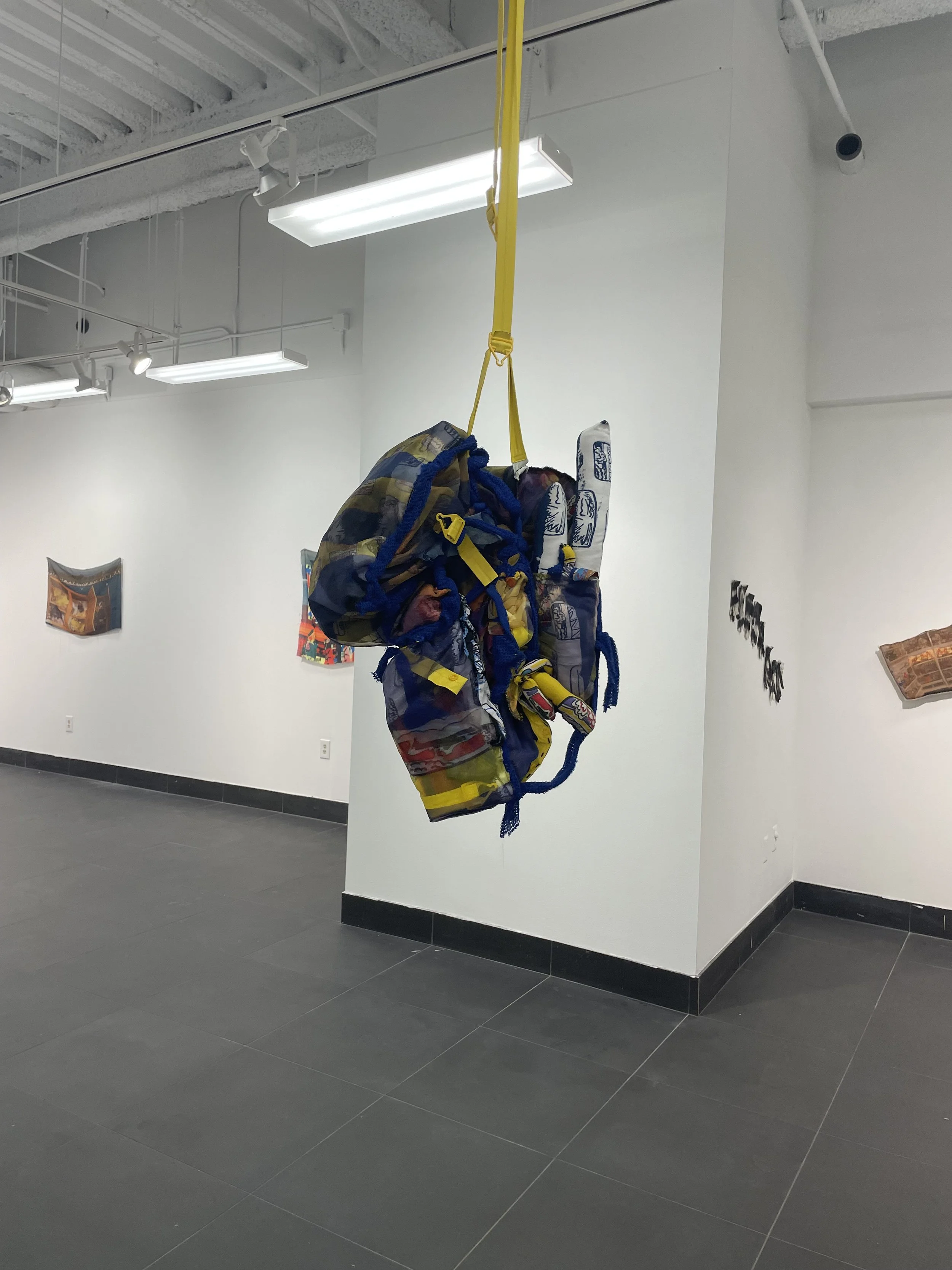 The exhibition Collection/Conservation delves into the intersection of memory, sustainability, and expression through textiles. By incorporating fabric prints, weavings, fiber assemblages, and soft sculptures, I create a rich tapestry of visual and tactile experiences. Central to my practice is transforming inherited garments and self-fashioned fabrics, blending traditional techniques with digital manipulation to merge past and present. Collection/Conservation utilizes imagery sourced from my relatives, who suffered from Alzheimer's, and used photography to collect their thoughts and memories. Upon their passing, I inherited their photos and cameras. Take Jenny’s Fridge. This work consists of remains from reconstructed bedding paired with digitally manipulated collaged imagery, at once remembrance and refuse. In another work, Scarf Scraps, I dissect and transform hand-me-down clothing, discarded fabrics, and fibers—an accumulated mass of thread, yarn, and roving from swept studio spaces—spun together and assembled into structures with dye baths, knitting, and stitching tactics.