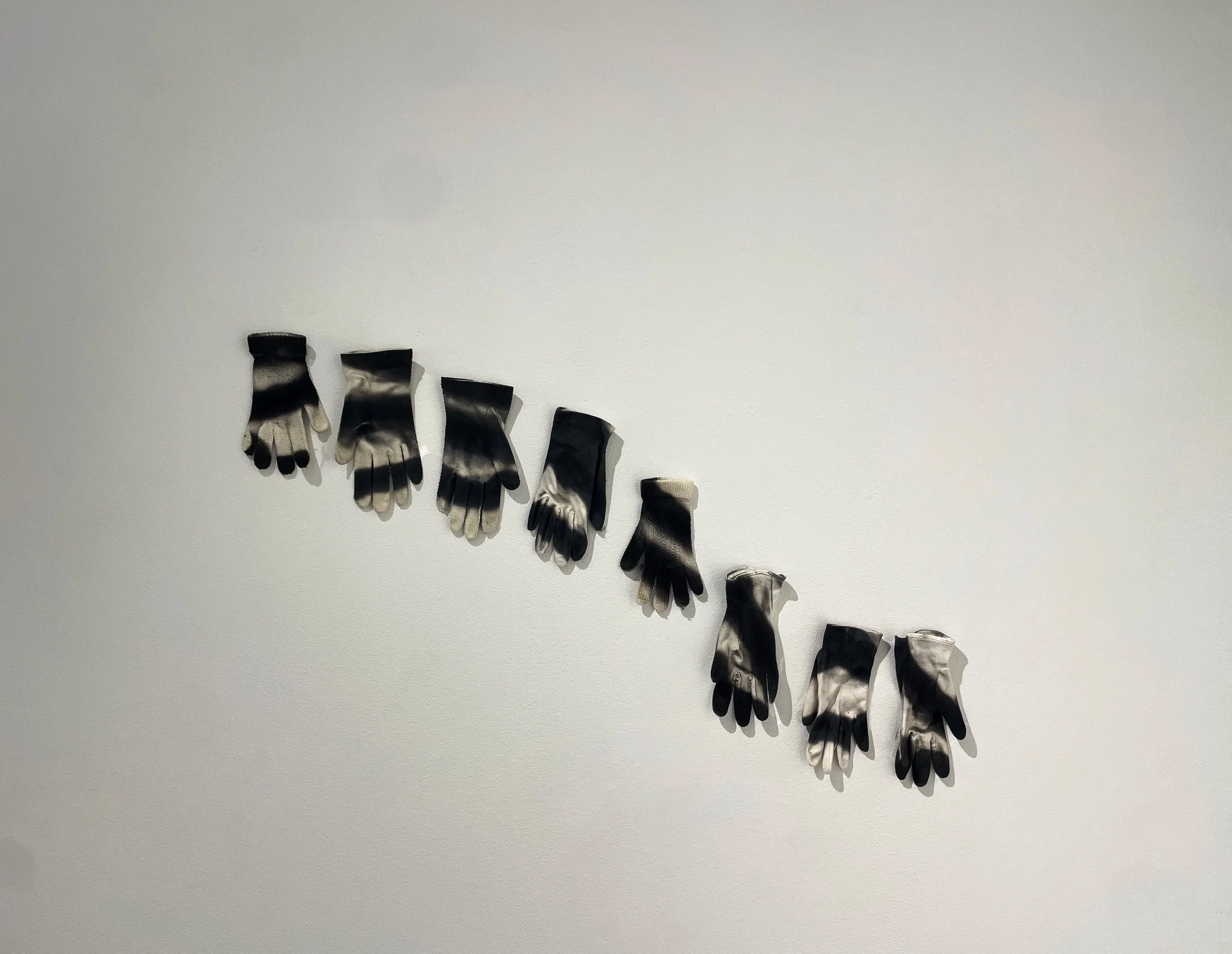 Spray paint on the gloves my grandmother wore to church every Sunday morning as an exploration of how objects hold memory through stains.