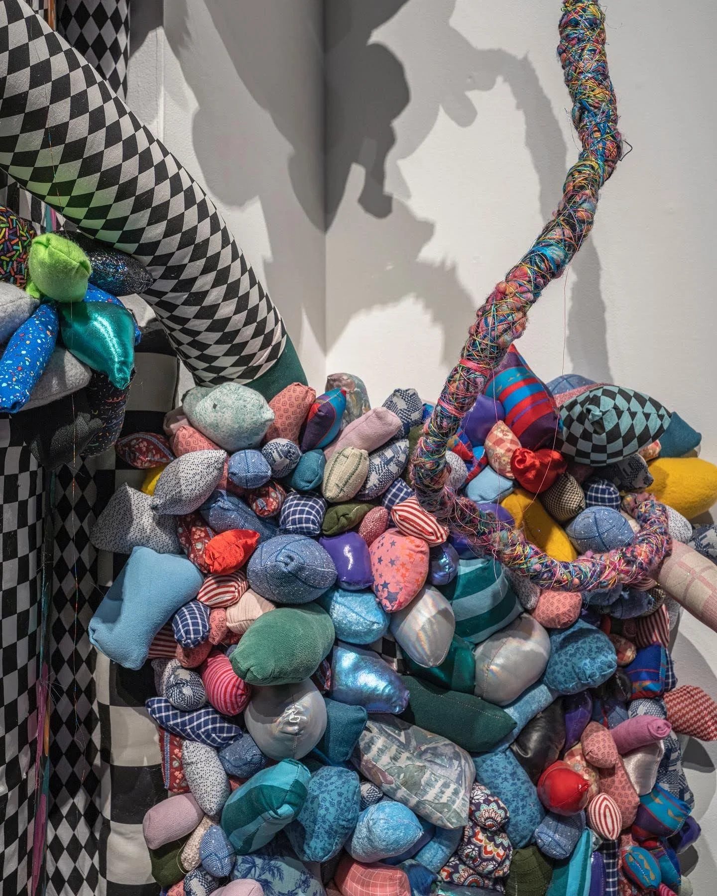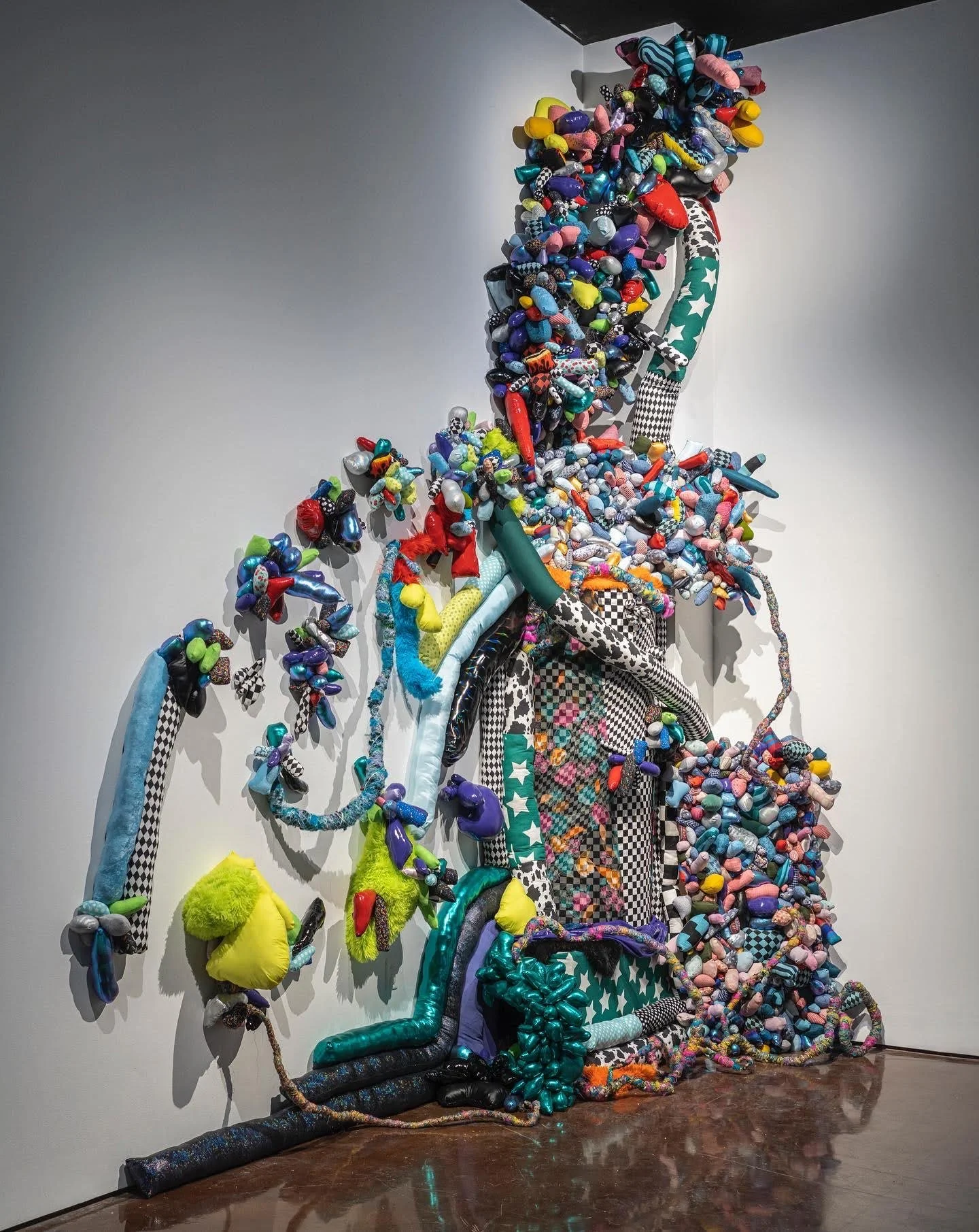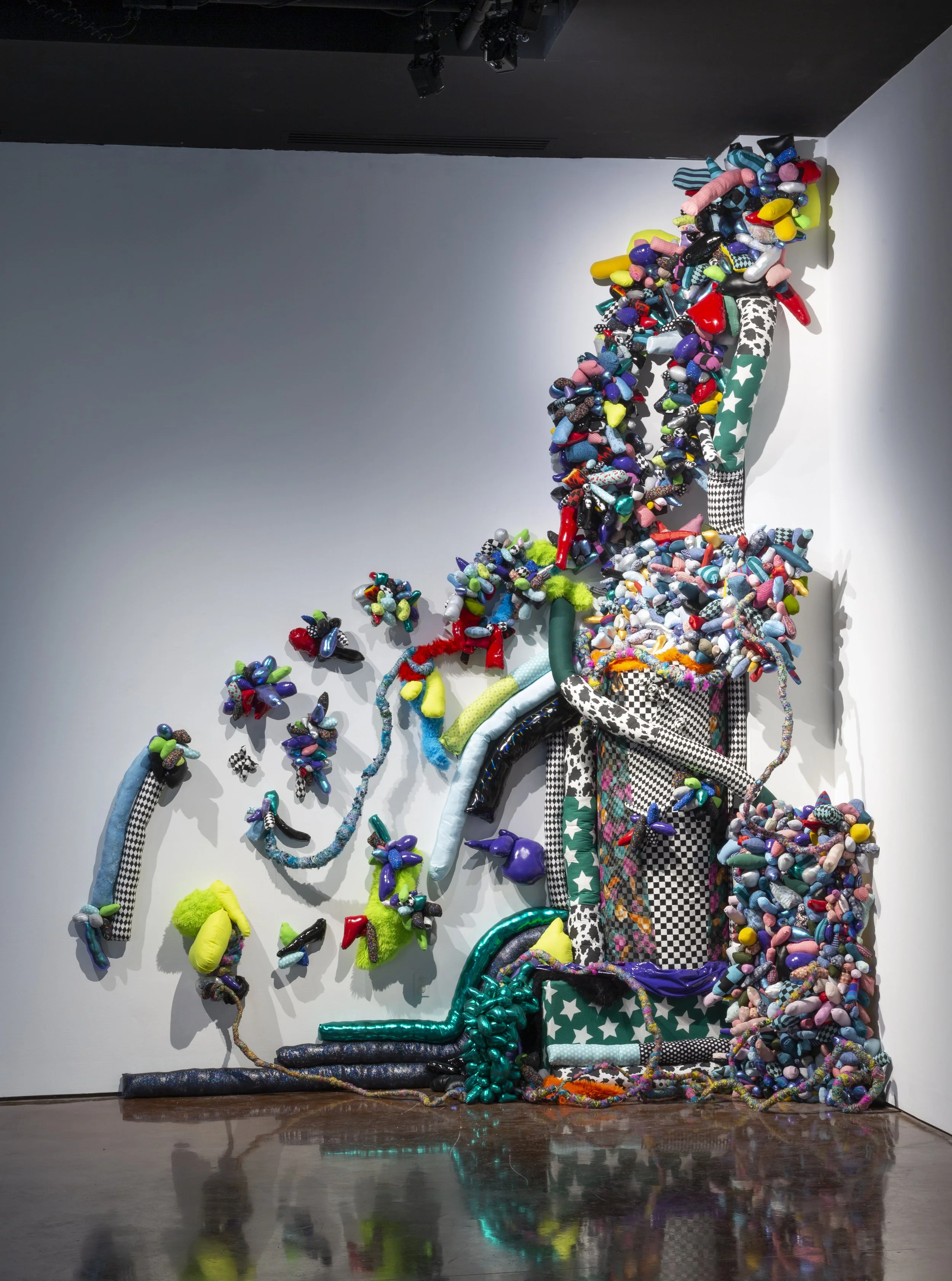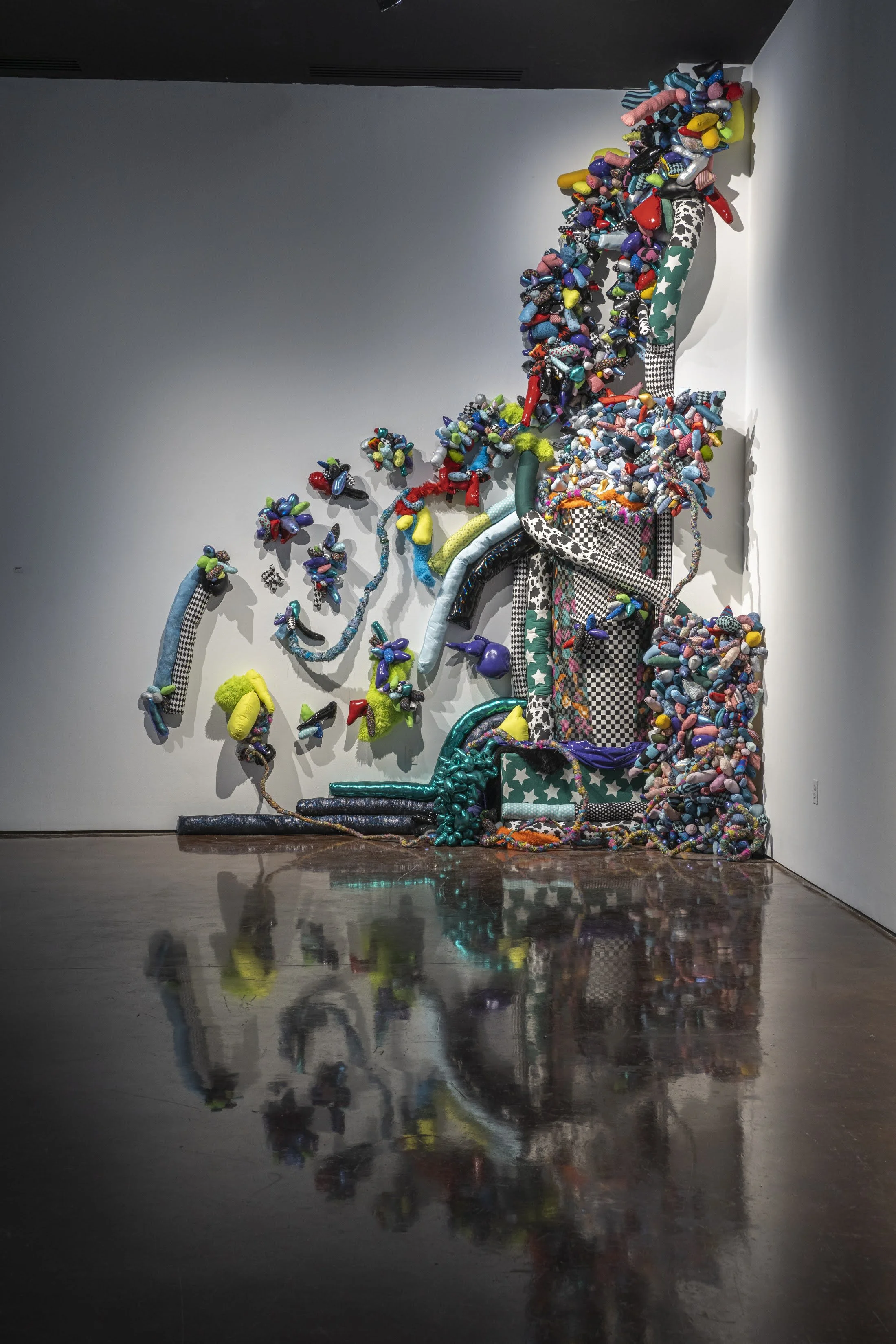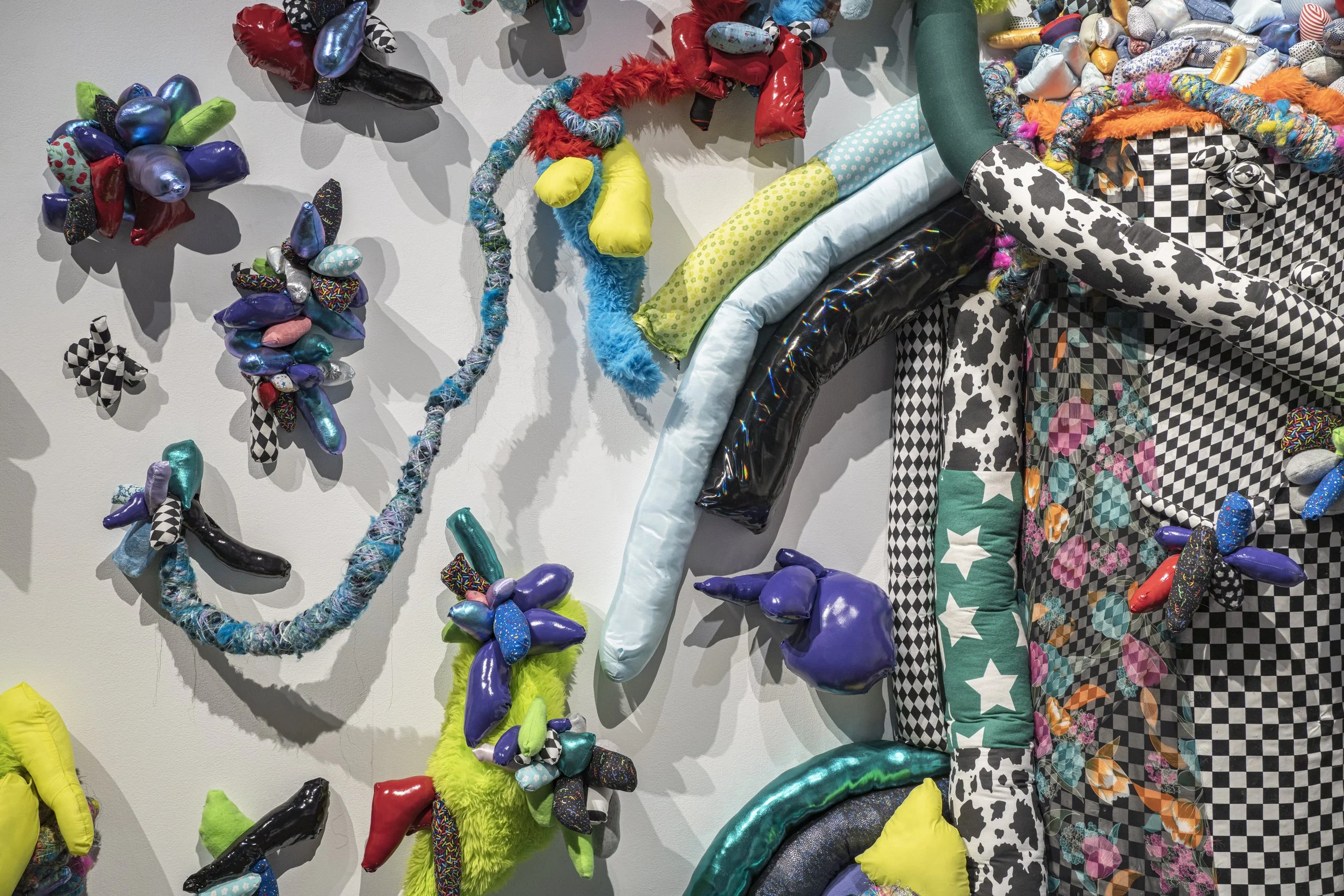 Pandemonium Pandemonium2021Fabric, batting, thread, wool roving, steel rod, chicken wire, plywood, styrofoam.Dimensions Variable