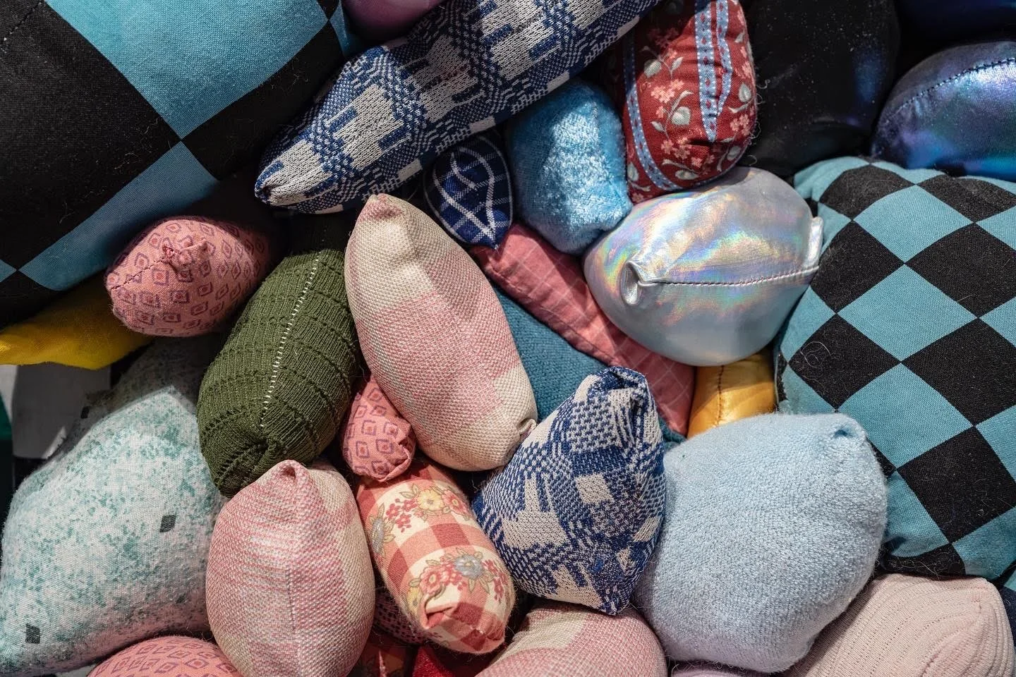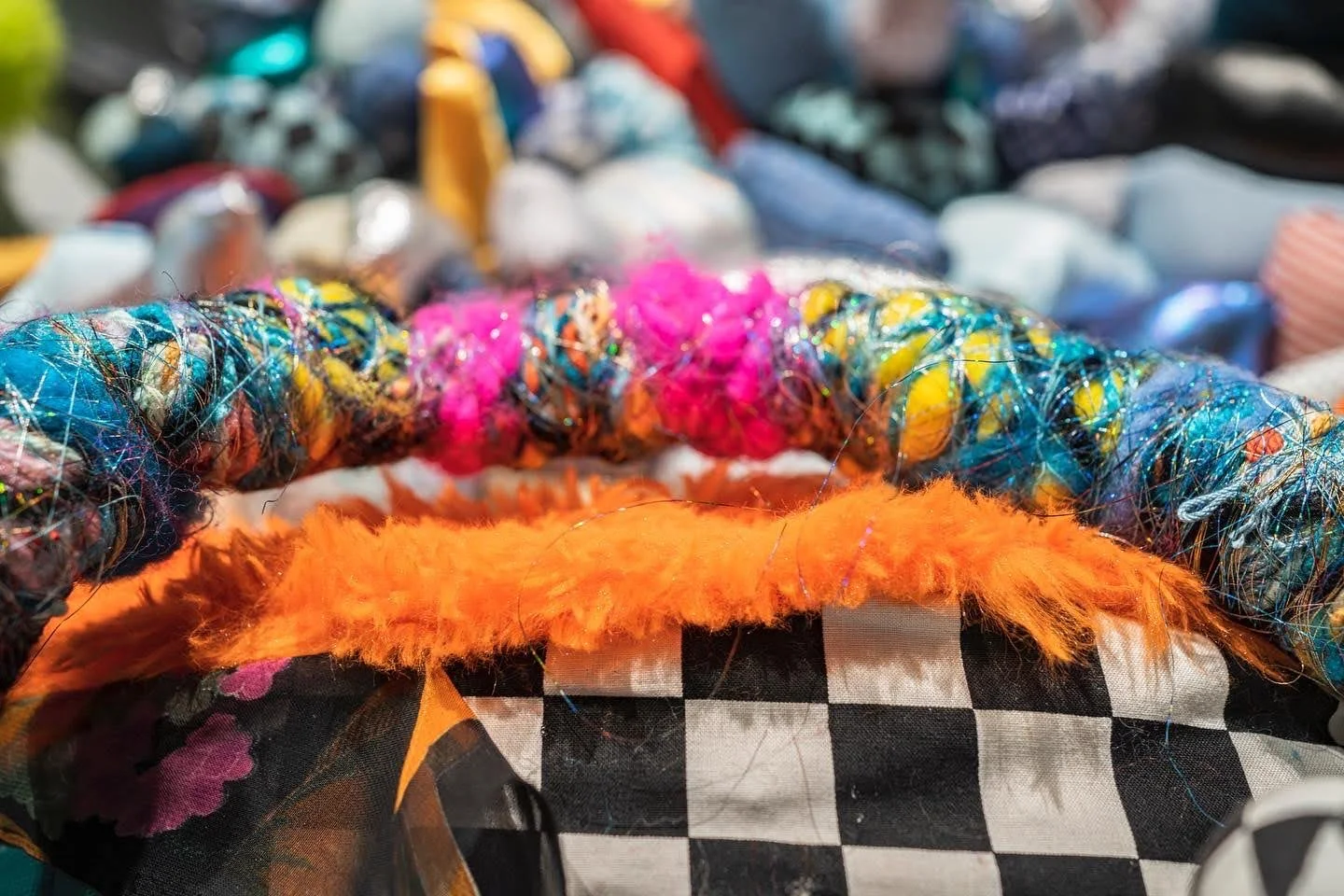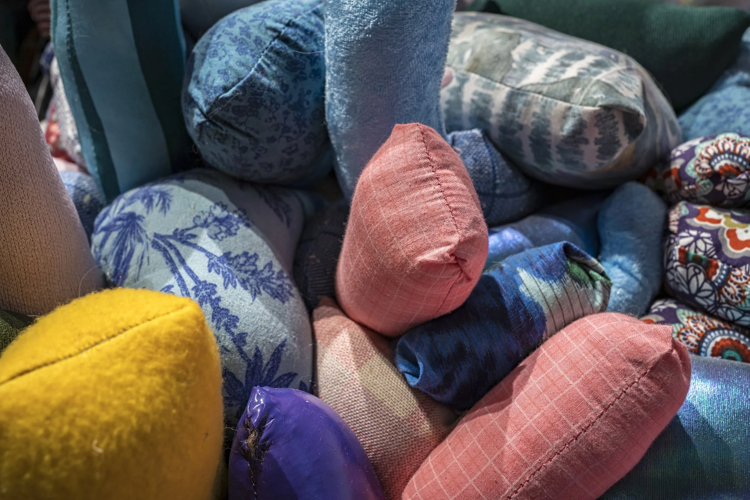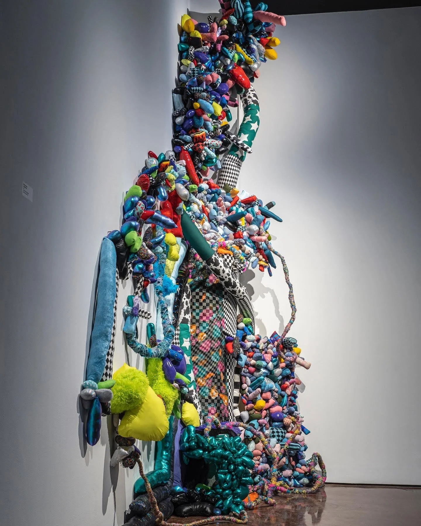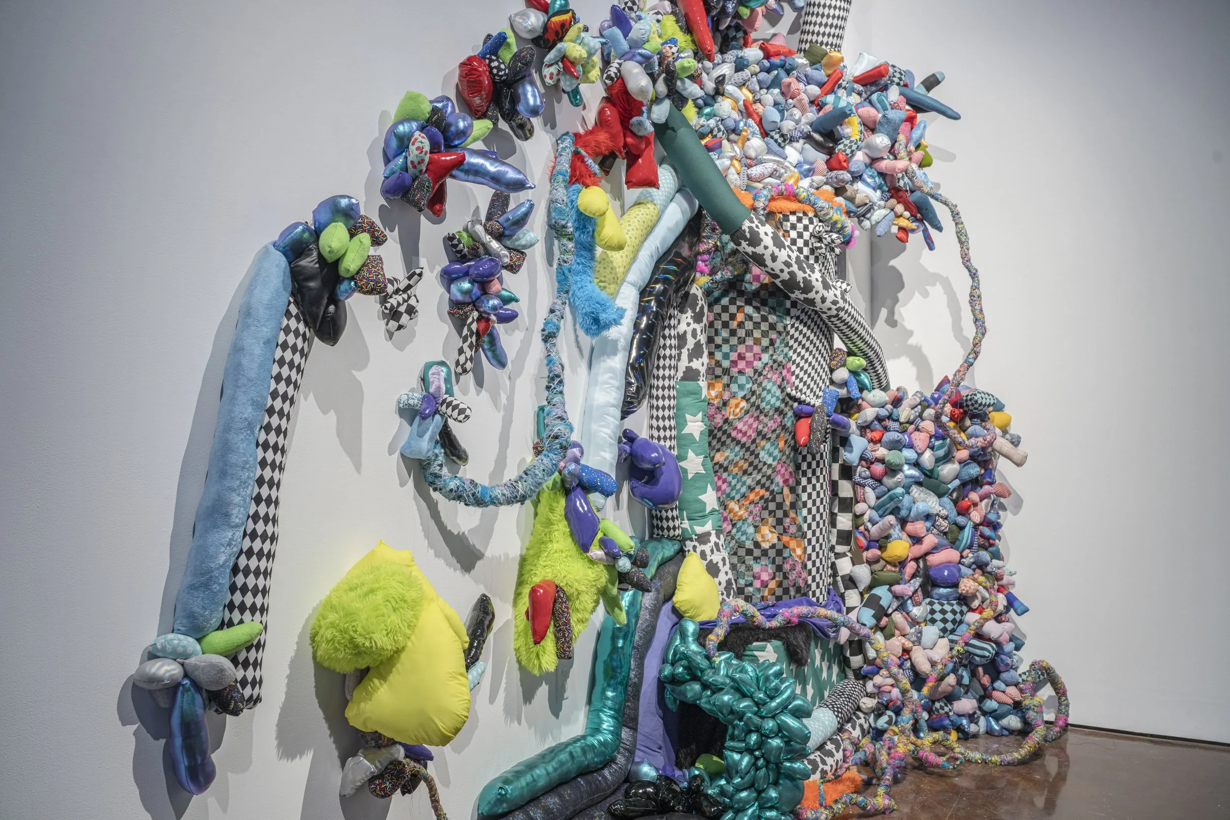Pandemonium Pandemonium2021Fabric, batting, thread, wool roving, steel rod, chicken wire, plywood, styrofoam.Dimensions Variable